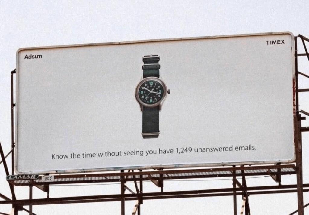 - الجمهور المستهدف: يبدو أن لوحة الإعلانات تستهدف الموظفين في الشركات والأفراد المشغولين الذين سئموا الضغط المستمر للعالم الرقمي. من خلال وضع الساعة كأداة للبساطة والتركيز، تجذب هذه العلامة التجارية أولئك الذين يبحثون عن الراحة من الاتصال المستمر. قد لا تكون الفكرة عملية فعلا ولكنها من ناحية نفسية تضرب على الوتر الحساس وبالتالي تستطيع الوصول إلى الجمهور المستهدف.